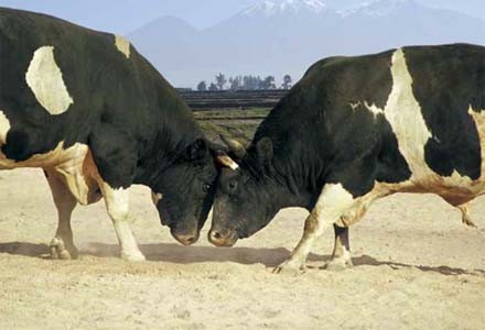 Dícese del acto de golpearse con la cabeza o testuz los animales, también se traslada a las personas cuando se golpean con la cabeza.