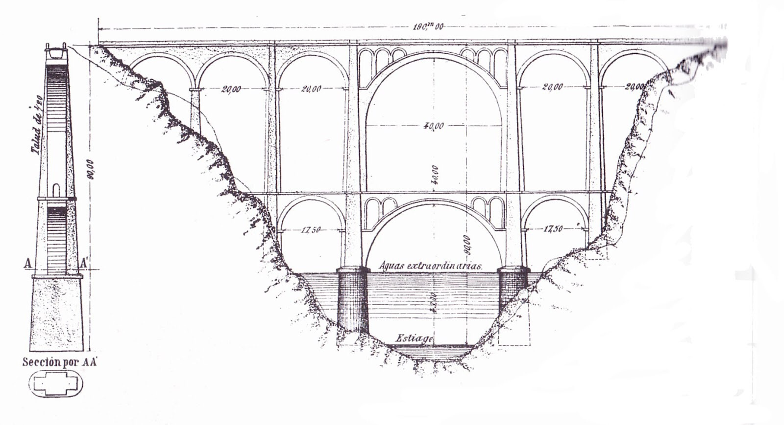 Tras barajar distintas soluciones, Ribera se decantó por un arco parabólico de 120 metros de largo y 90 de altura sobre el río. Record de luz y altura en la España de la época. El peso total de la estructura era de 450 toneladas, es decir, 414 kg por metro cuadrado. El presupuesto inicial para ejecutar la obra era de 348.000 pesetas, superado ampliamente a su finalización hasta llegar a las 599.000 pesetas.