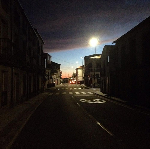 En este caso, el atardecer tiene un color especial. En primer lugar por el entorno, el centro urbano de Bermillo y, en segundo lugar, por el contraste entre la luz natural y la luz del ocaso. Un atardecer urbanita en un entorno eminentemente rural… una pasada en todos los sentidos. Por cierto, la foto es de @pradaber (muchas gracias)