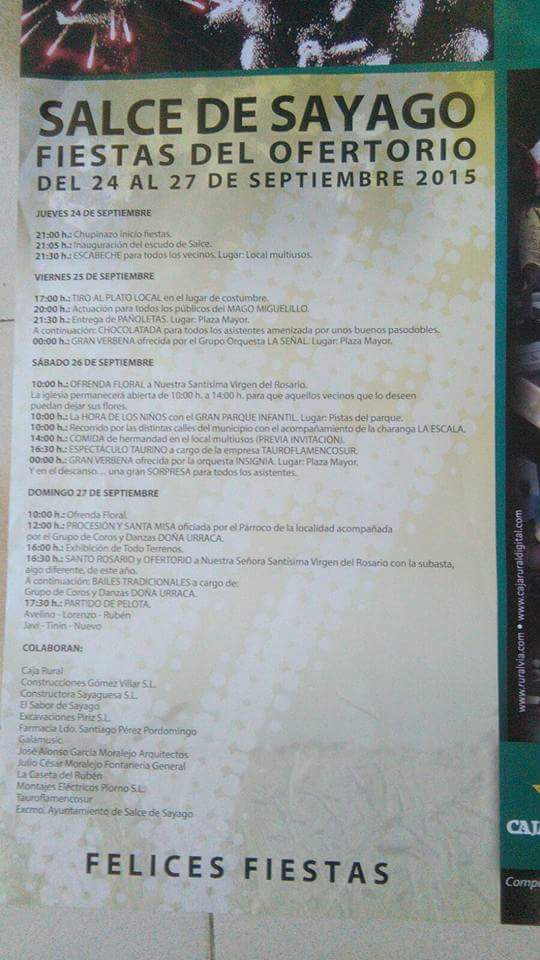 Cerramos septiembre con las fiestas del Ofertorio en Salce.Las celebraciones comienzan el jueves con el chupinazo y una degustación de escabeche. Ese día, como novedad, se presentará el escudo de la localidad.