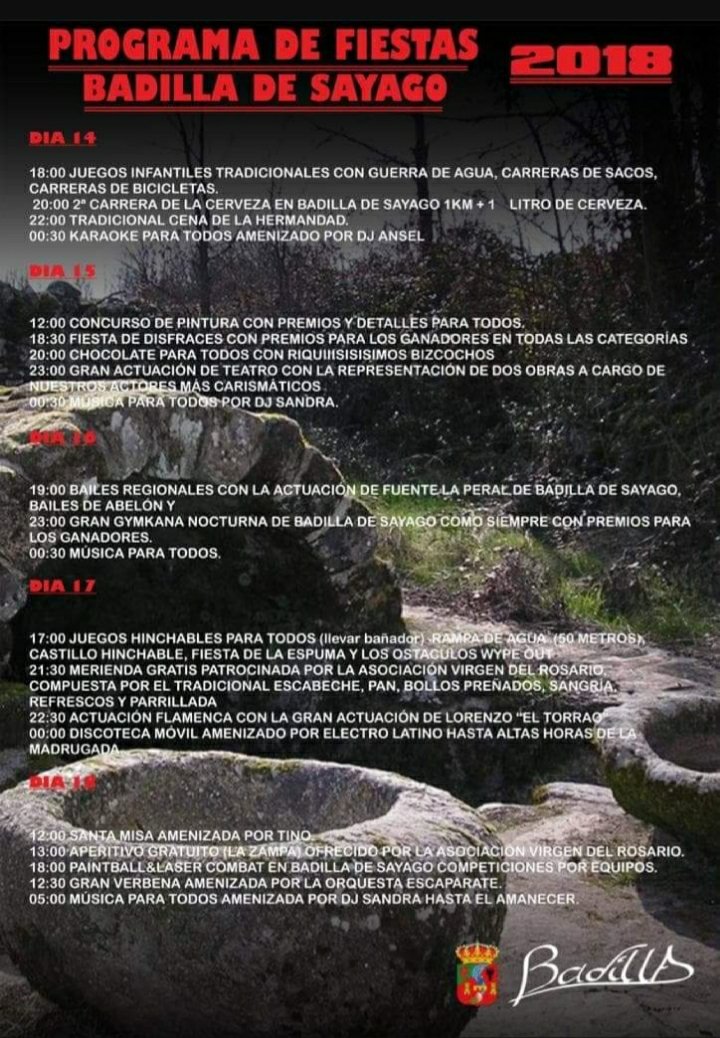 El 17 juegos hinchables y merienda patrocinada por la asociación Virgen del Rosario. Más tarde, actuación flamenca y disco móvil con electrolatino.