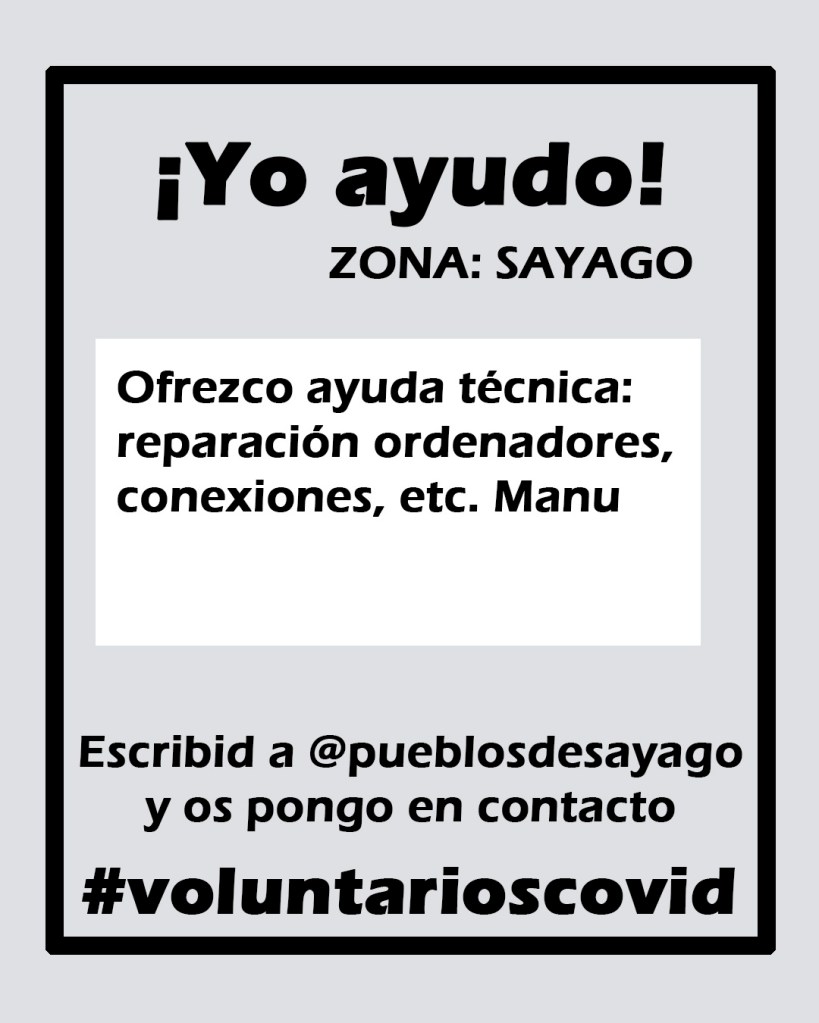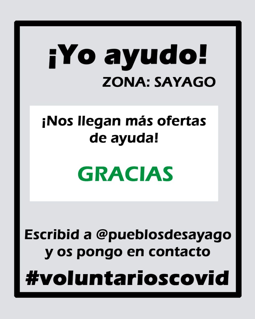 Los ciudadanos de a pie estamos dando una lección a la sarta de gobernantes inútiles que nos ha tocado sufrir. Desde las redes, un movimiento de sayagueses y sayaguesas ofrece su ayuda a personas mayores, que viven solas, que necesiten una mano para tareas cotidianas. Para enviar tu ayuda / apoyo o colaboración etiquetanos en redes @pueblosdesayago