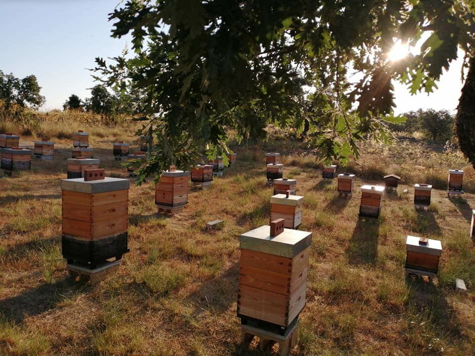 Estamos a las afueras de Bermillo. Son poco más de las ocho de la mañana y el colmenar es un intenso ir y venir de pecoreadoras en busca de néctar y polen.