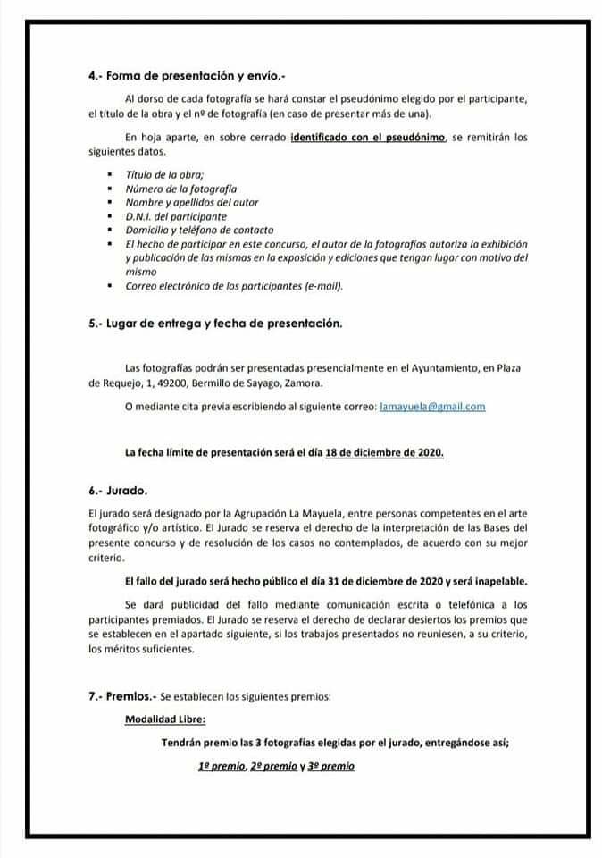 Cada participante puede entregar un máximo de 3 fotografías. La fecha límite es el 18 de diciembre de 2020 en el ayuntamiento de Bermillo de Sayago.