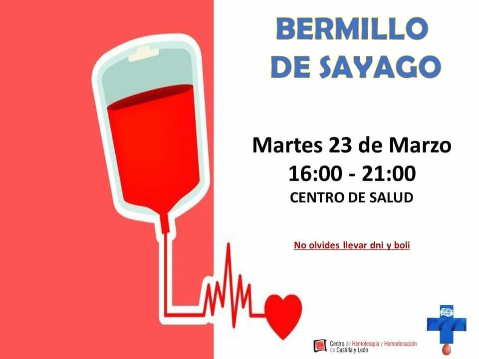 Donación de sangre, hoy en el Centro de Salud de Bermillo de Sayago