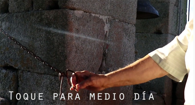 La reportera (Beatriz González) sube con Agustín Blanco al campanario, que con paciencia, va mostrando los diferentes toques que se pueden hacer. El primero, el toque de domingo o festivo.