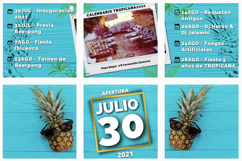 En la plaza mayor, el restaurante Medieval abre en agosto Tropicana Fermoselle, su terraza de verano. Organiza torneos de beerpong, sesiones de reguetón, Dj´s, fuegos artificiales y fiestas aniversario.
