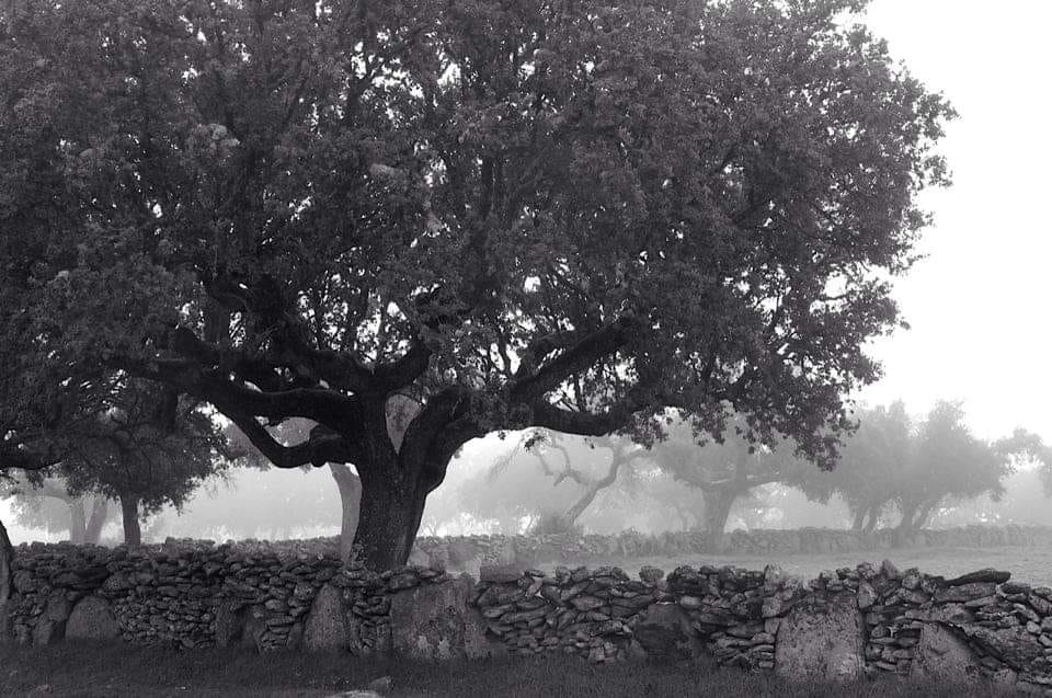 … Así de perfecto es el paisaje sayagués. Donde una encina se yergue sobre paredones y los pájaros revolotean emitiendo sonidos de paz. A veces pienso que contratan duendes a primera hora de la mañana, que utilizan los mejores atrezzos para formar piedras, la niebla, luz y sonido… Pero no, tengo el privilegio de vivirlo en un presente real. Inspirar esta maravillosa vitamina que nutre y rejuvenece el alma. Gamones de Sayago, Arribes.