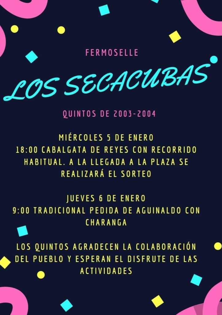 saldrá a las 18 horas de la Residencia de Ancianos Conchita Regojo, acabando en la Plaza Mayor, donde habrá un regalito para todos los pequeños. Los quintos del 2003 y 2004, unidos en la misma quinta este año acompañarán a Sus Majestades por las empinadas calles de la villa. Vivan los quintos!!