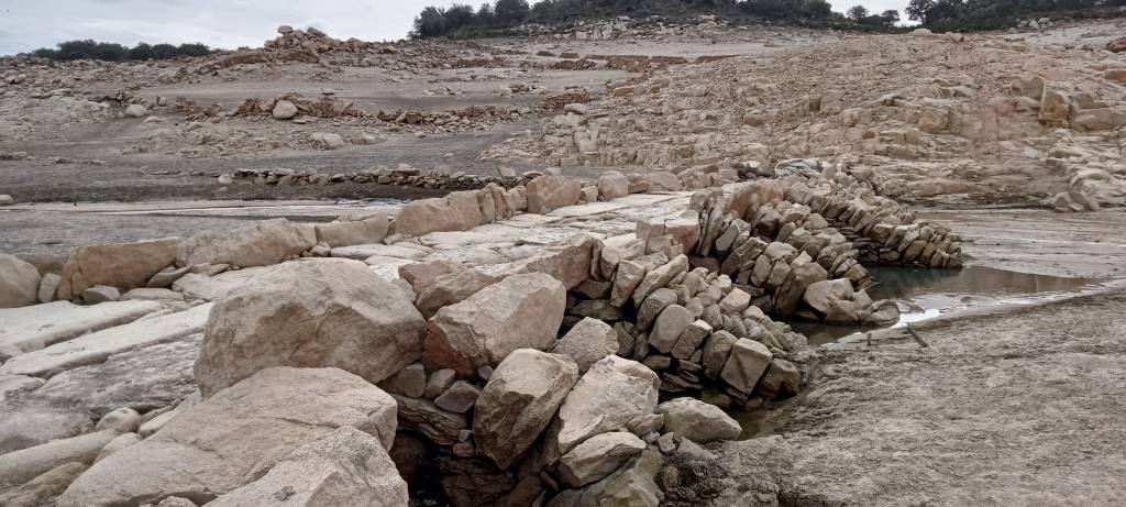Con el embalse al 35% siguen apareciendo construcciones que quedaron bajo el agua