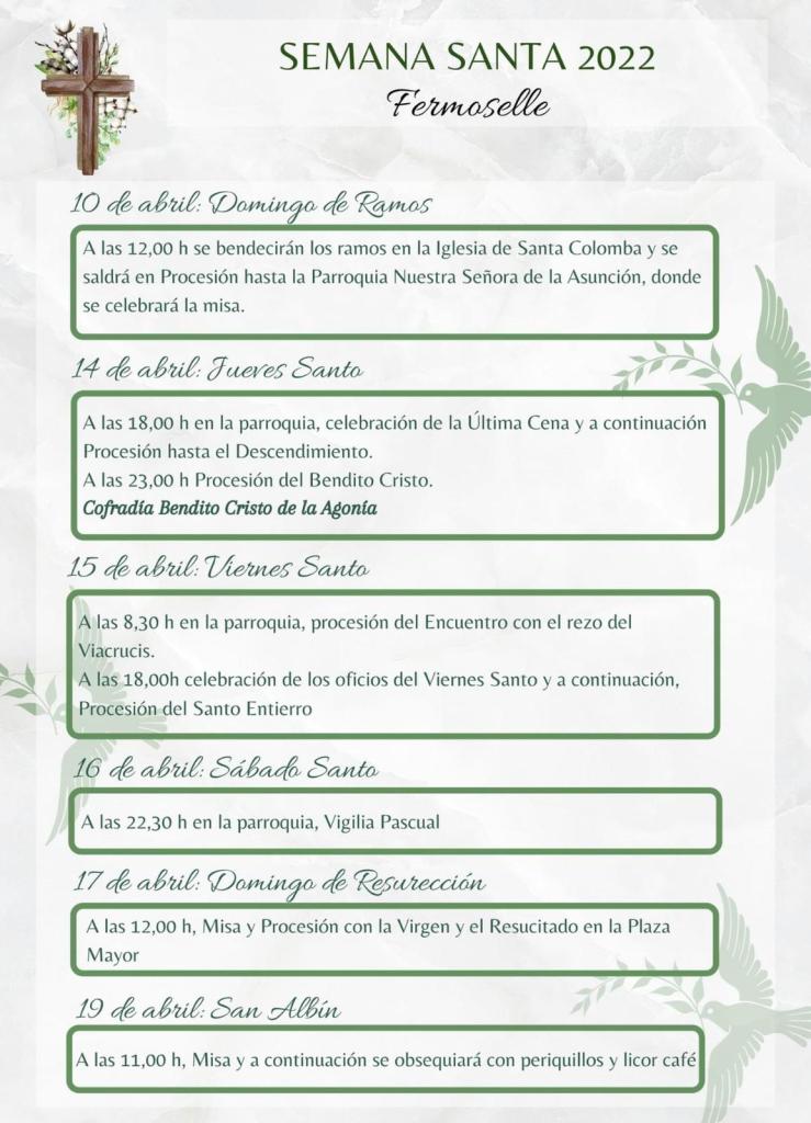 - A las 12 horas se bendecirán los ramos en la plaza de Santa Colomba. Desde allí marchará la procesión hasta la iglesia parroquial de la Asunción donde se celebrará la misa