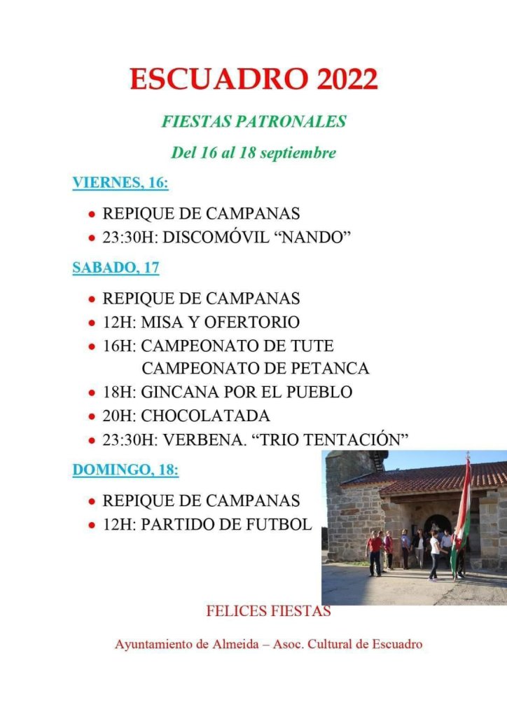 Este es el programa de las fiestas patronales de Escuadro 2022