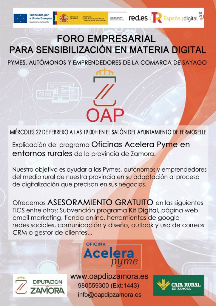 El foro Empresarial se celebra el miércoles 22 de febrero a las 19:00h en el salón de actos del Ayuntamiento de Fermoselle con el objetivo de ayudar en la digitalización