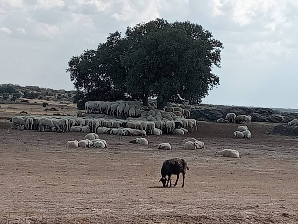 Mucha bellota este año, menos mal que las «piaras» no andan por el cortineo que si anduvieran no iba a haber cristiano que las sujetaran, que como se piquen a ellas no hay «parede» que se le resista. Por ahí os mando una «piara siestando«, cosa de lo mas normal, si no fuera porque en octubre no es muy corriente que se «amaricen» de esta manera; y claro en «tolas familias tien que haber alguna oveja negra» o como mínimo «bardina».