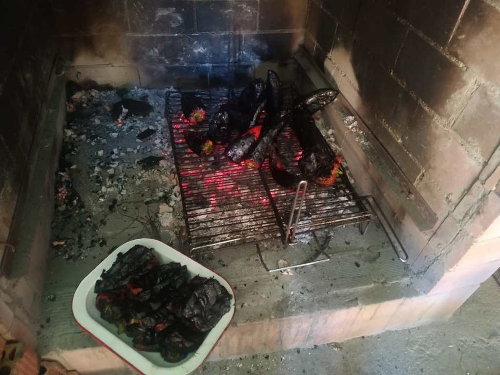 No puedo olvidarme de los pimientos asaos. Muy ricos están, sobre todos los del país, que terminan en pico; ni de cuatro morros ni leches. Estos últimos tendrán mas carne, pero de sabor «ni cerca ni a la vera«, aunque este año el aceite habrá que «arracionarla» que ha «encariao» mucho.