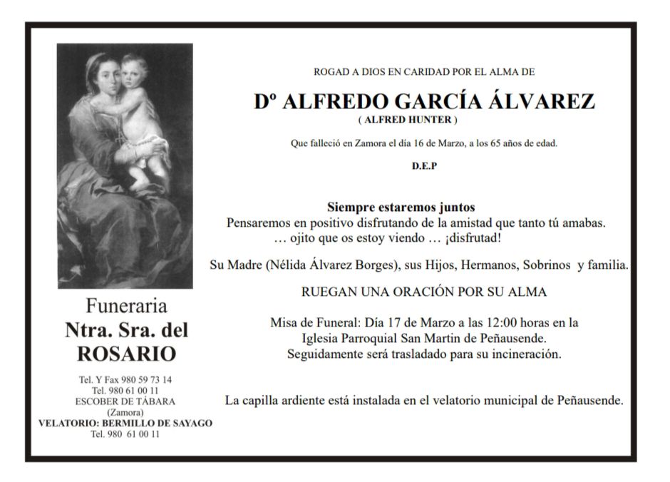 La misa por su eterno descanso se celebrará mañana 17 de marzo a las 12 horas en la parroquia de Peñausende.