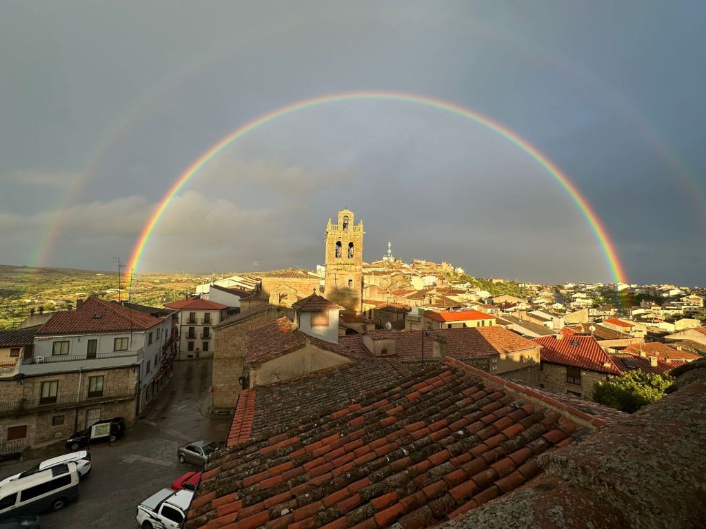 La lluvia con Sol de ayer tarde trajo consigo la aparición de un majestuoso arco iris sobre la villa Sayaguesa