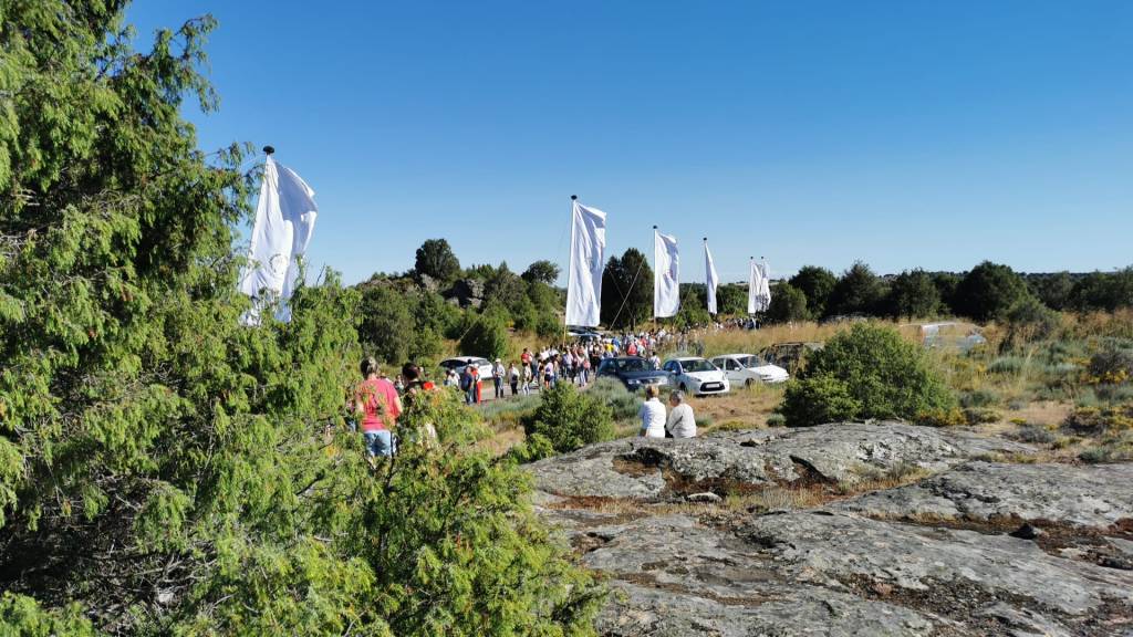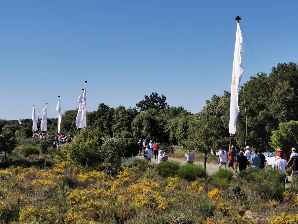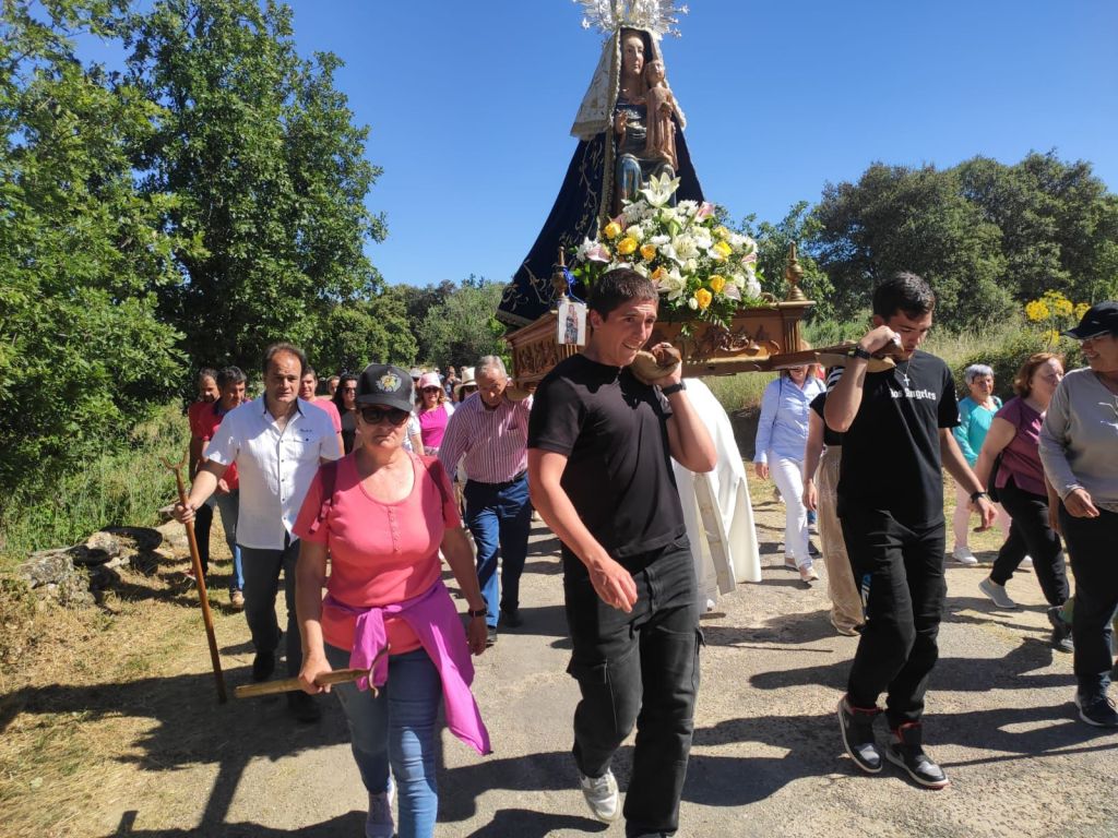 En la procesión desde la parroquia hasta la ermita, a varios kilómetros del centro del pueblo | Junto a la Virgen desfilan los pendones de Argañín, Badilla, Cozcurrita, Fariza, Mámoles, Palazuelo, Tudera y Zafara