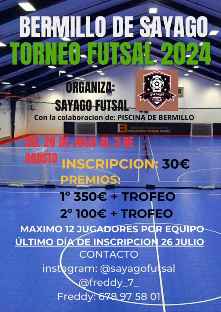 19:00 Inicio del Torneo de Futbito «Villa de Bermillo 2024) con un primer premio de 350 euros y trofeo y un 2º de 100€ y trofeo. Inscripción de 30€ que se debe abonar antes del comienzo de la competición.