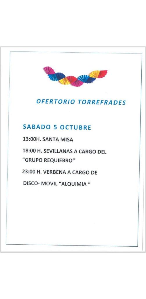 Programa del Ofertorio de Torrefrades para el sábado 5