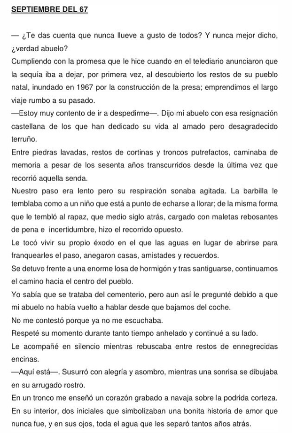 El café Varsovia de León acogió la entrega de premios del I Concurso de Microrrelatos «De Simiente y Pueblo«, organizado por la Hospedería Casa Visi. El escritor aficionado Víctor Valdesueiro Bernabé (@valdesuei en Instagram) ganó el primer premio con su obra «Septiembre del 67», inspirada en la desaparición de Argusino de Sayago por la construcción de la presa de Almendra. La narrativa conectó con el público leonés, sensible a historias similares por los embalses de Riaño y Barrios de Luna. Valdesueiro recibió una estancia en Gordoncillo, 125 euros y un lote de libros, sumando este logro a otros premios recientes.