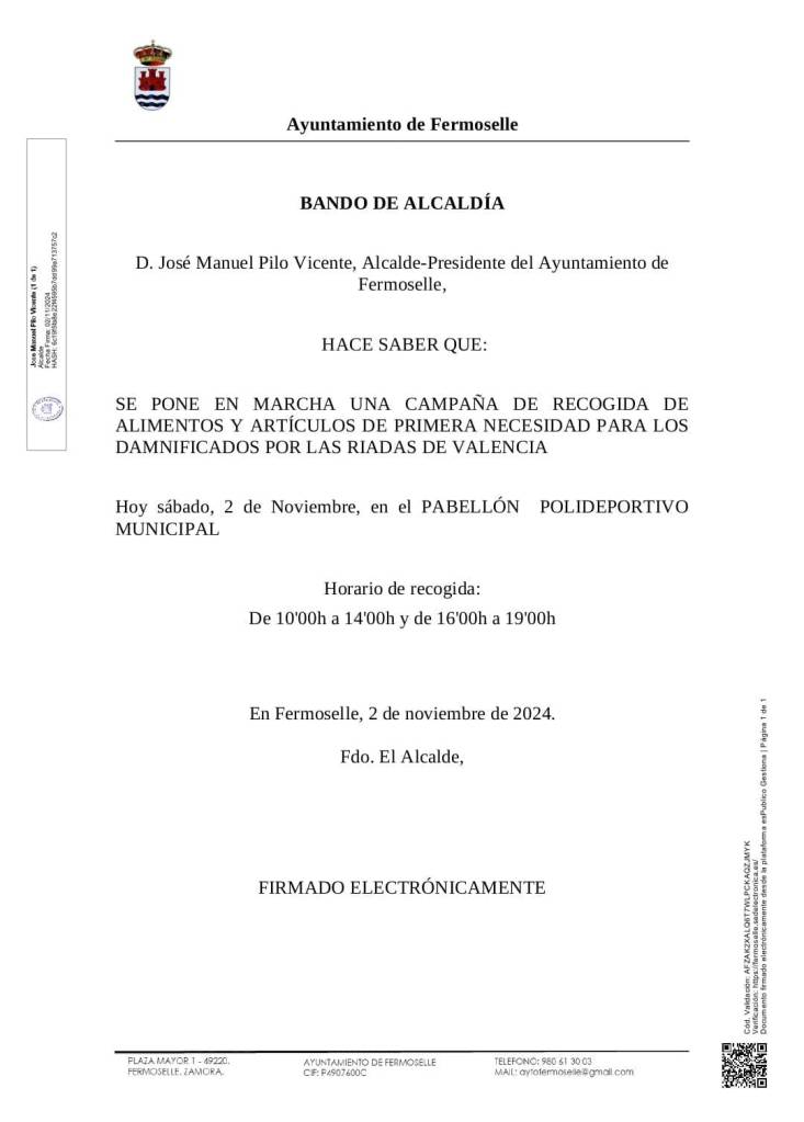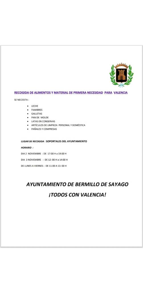 Fermoselle recogerá alimentos y artículos de primera necesidad en el polideportivo municipal | Bermillo solicita alimentos, artículos de limpieza y pañales en los soportales del consistorio
