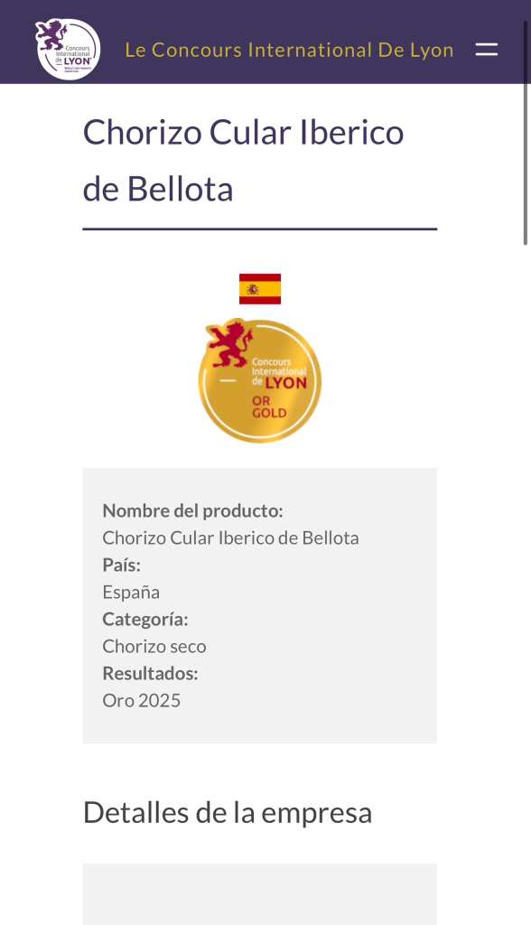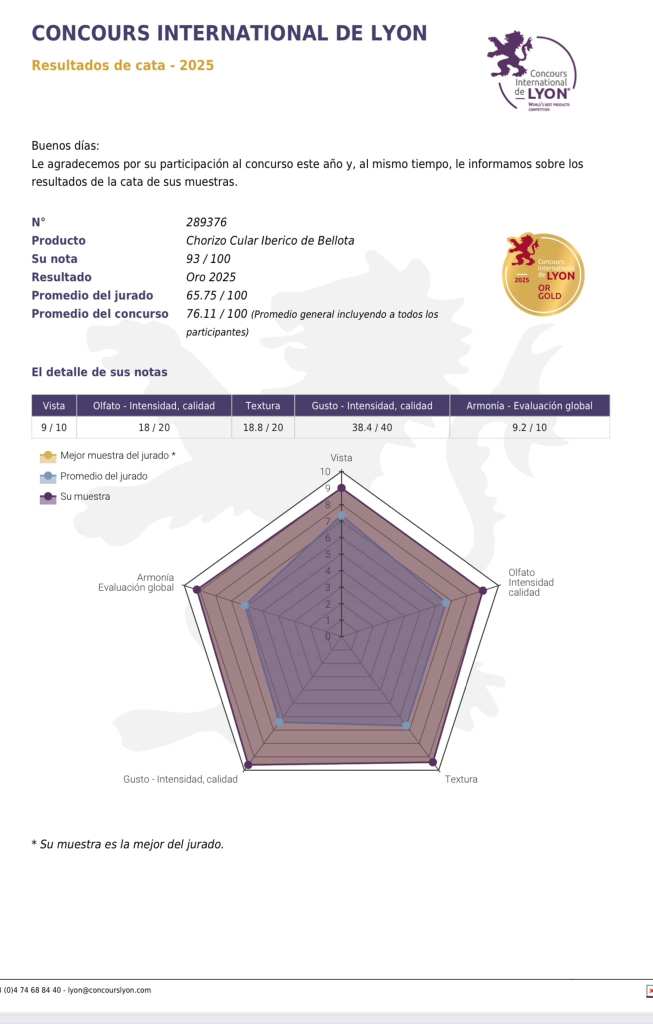 Su CHORIZO CULAR DE BELLOTA ha sido elegido el mejor del concurso entre más de 1900 muestras obteniendo la medalla de ORO