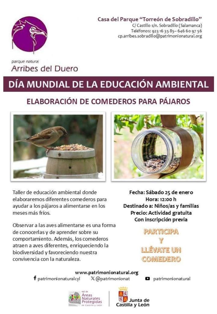 El domingo 26 de enero es el Día Mundial de la Educación Ambiental y, en el Parque Natural Arribes del Duero, lo celebraremos durante todo el fin de semana, con talleres educativos para, entre otras cosas, conocer el comportamiento de las aves.