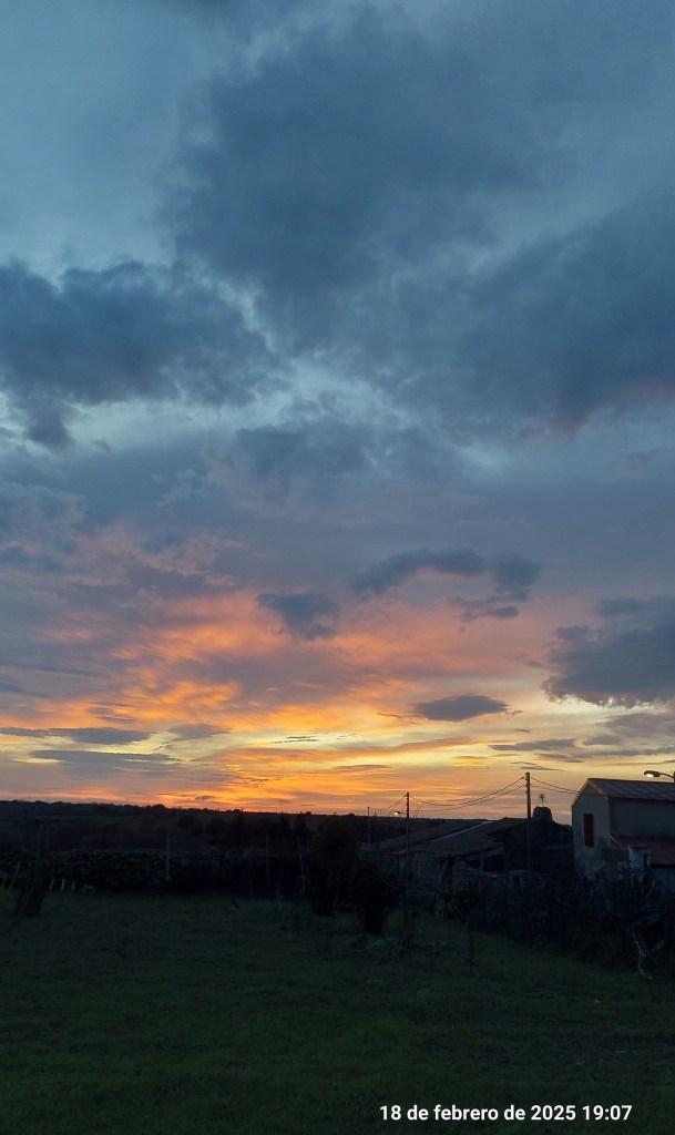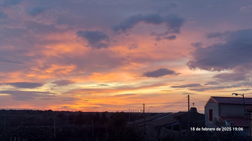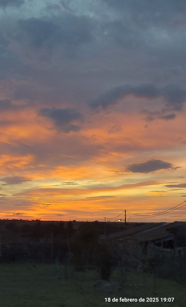 Febrero nos ha regalado esta magnífica puesta de sol en este 18 de febrero que me trae recuerdos dulces. Hoy hace 54 años que conocí a mi compañero de vida, padre de mis cuatro hijos y abuelo de mis cuatro soles.