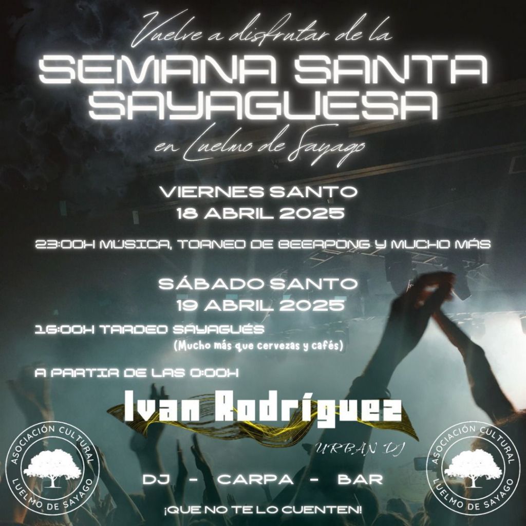 Luelmo de Sayago se prepara para vivir una Semana Santa diferente. Este 2025, la Asociación Cultural de Luelmo ha tirado la casa por la ventana y promete un fin de semana inolvidable para vecinos, amigos y visitantes que quieran disfrutar de la mejor música y un ambiente inmejorable en pleno corazón de Sayago.