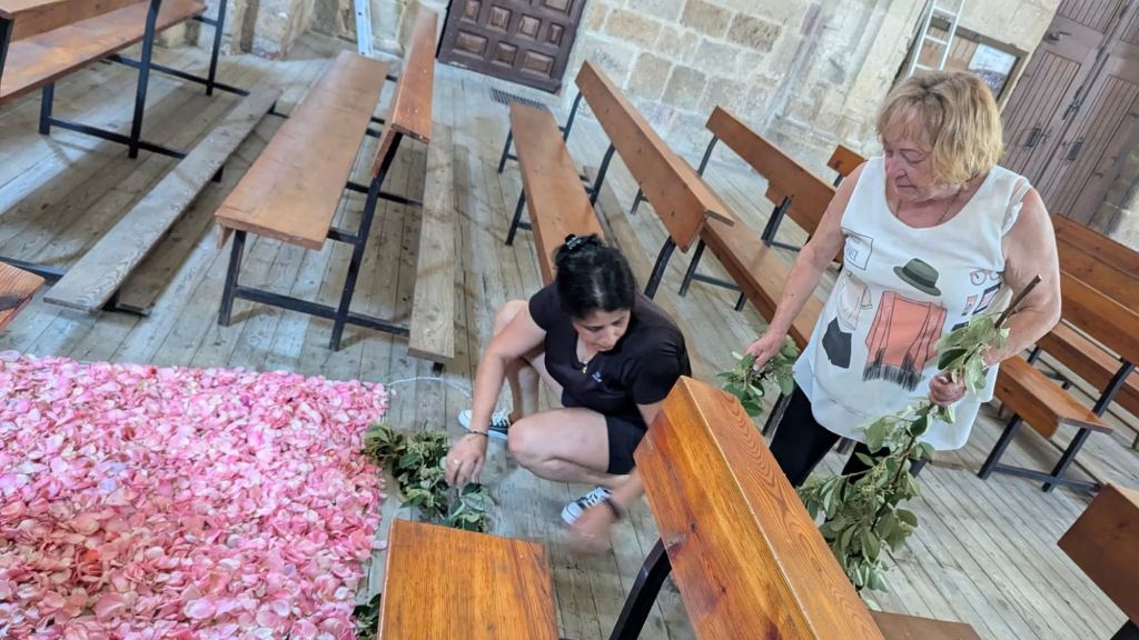 Al entrar a la iglesia el perfume de las plantas aromáticas nos trae recuerdos de la niñez. El domingo en sus altares en plazas y calles se mostrarán de forma sencilla para celebrar el Corpus Cristhie y los niños de la Primera Comunión irán sembrando de pétalos de rosa todo su camino tras el palio en el que el sacerdote, Don Mariano, llevará la Custodia que como su nombre indica, custodia la Sagrada Forma y que es la verdadera protagonista de este día tan importante para los fieles católicos.