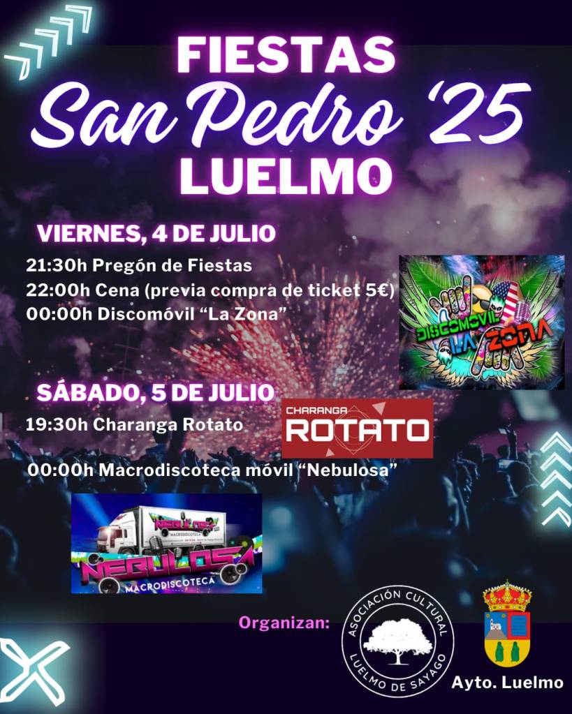 Viernes 4 y sábado 5 de Julio – San Pedro en Luelmo, ¡No te lo pierdas!