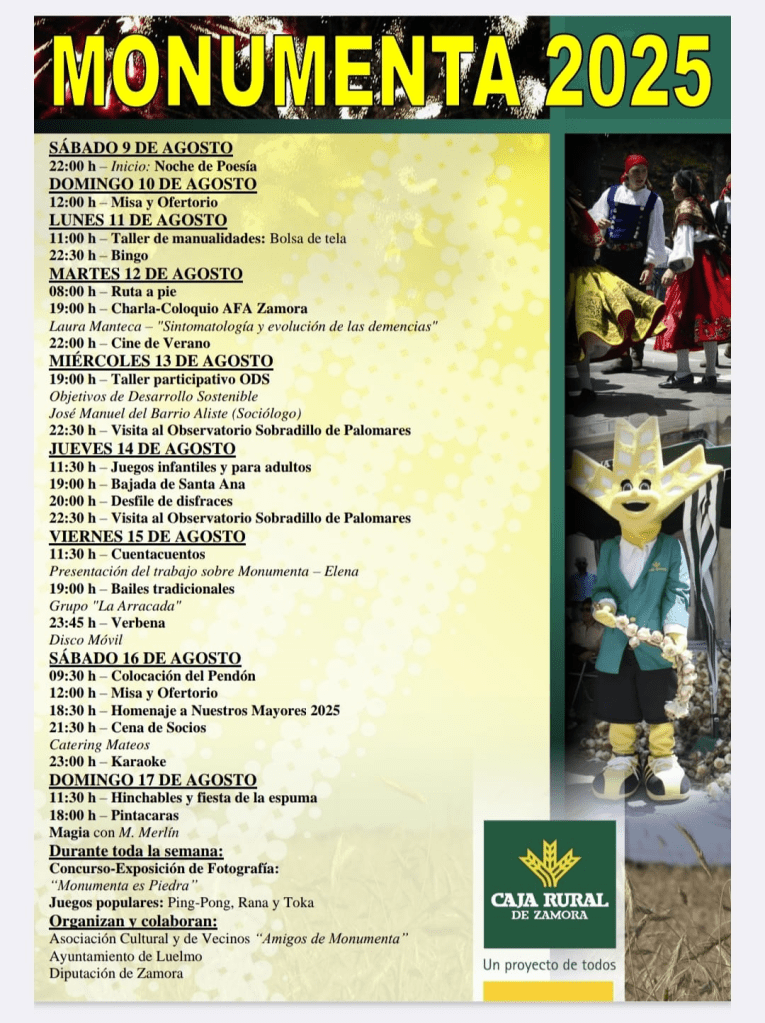 El pueblo de Monumenta se prepara para disfrutar de sus tradicionales fiestas patronales, con un programa repleto de actividades para todas las edades que combina cultura, deporte, música y convivencia vecinal.