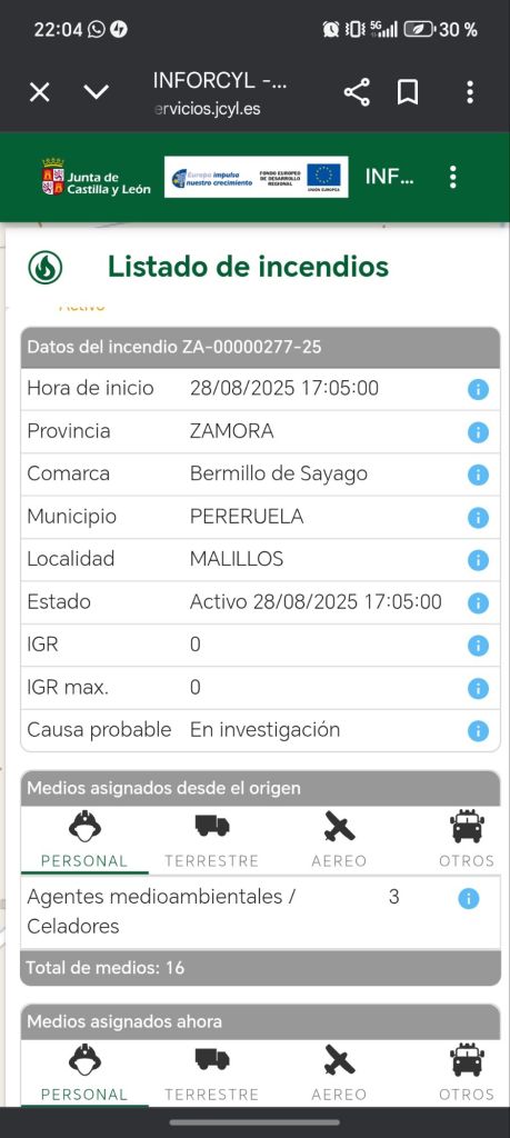 El incendio ha comenzado alrededor de las 17 horas en la dehesa de Puercas