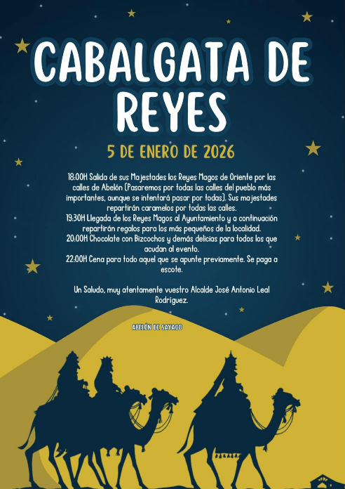 Abelón de Sayago celebrará la Cabalgata de Reyes hoy lunes 5 de enero, con una tarde repleta de actividades pensadas para todos los públicos.