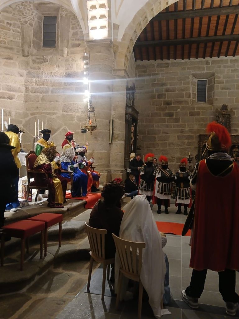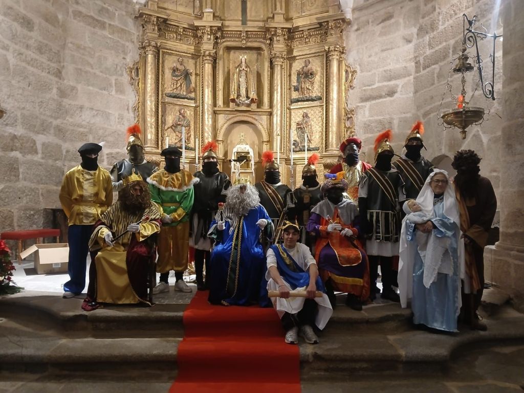 Sus majestades llegan a la parroquia acompañados de pajes, el emperador y los soldados