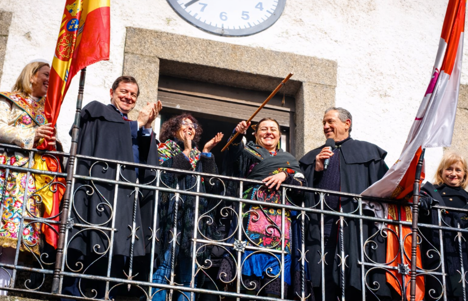 Isabel Bernardo Carrascal, vecina de la localidad, recibe de manos de Alfonso Fernández Mañueco, Javier Faúndez y Angelines Martínez el bastón de mando