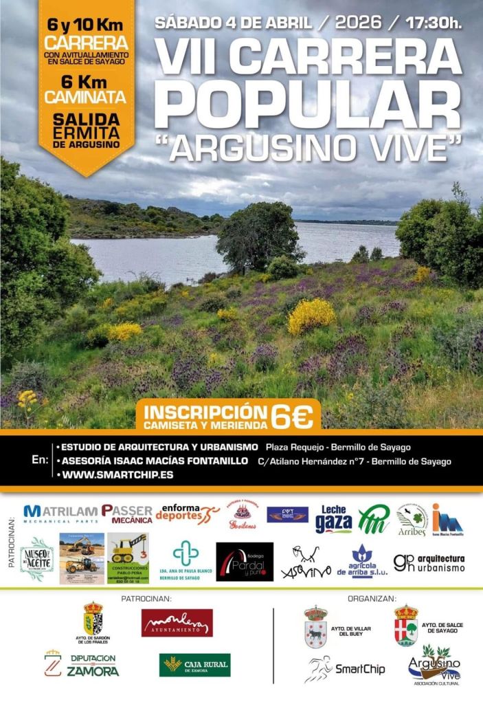 La VII Carrera Popular “Argusino Vive” ya tiene fecha: se celebrará el sábado 4 de abril de 2026 a las 17:30 horas, con salida desde la ermita de Argusino. La cita deportiva, ya consolidada en el calendario de primavera en Sayago, volverá a combinar deporte, memoria y convivencia en un entorno natural privilegiado junto al embalse.