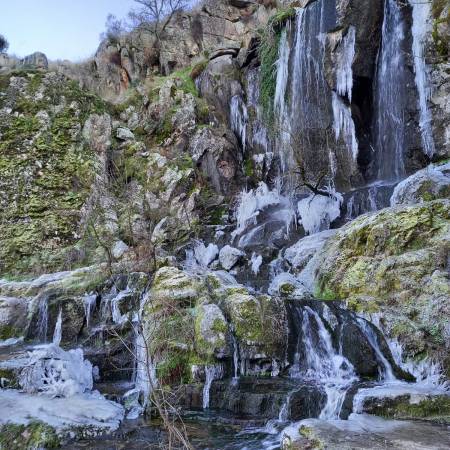 La borrasca Filomena deja «petrificadas» las Cascadas de Abelón