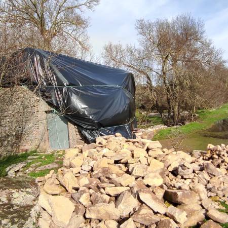El molino Matarranas: la piedra sacada y con plástico para cubrir el tejado