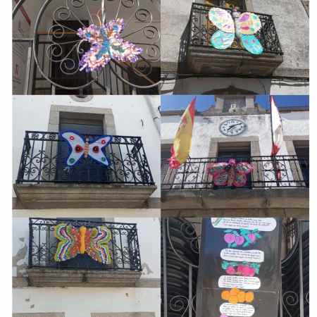 La Plaza Mayor de Bermillo de Sayago se llena de mariposas decoradas por La Mayuela