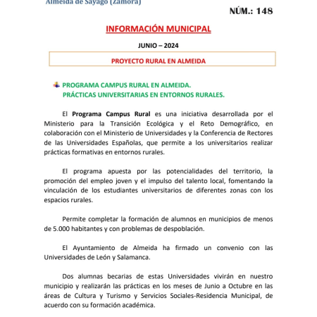 El ayuntamiento de Almeida renueva su compromiso con el proyecto «Campus Rural»