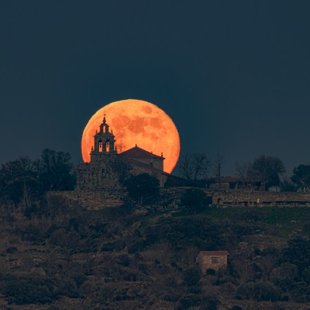 ¡Qué barbaridad! Luna llena sobre la ermita del Castillo desde el mirador de Freixiosa