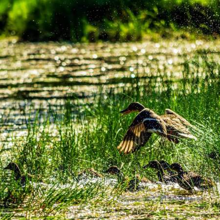 Ánades Reales disfrutando de la primavera en una charca de Luelmo