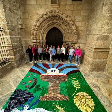 05.06.202306.06.2023 pueblosdesayago Las mujeres fermosellanas realizan una alfombra de tapones reciclados para el Corpus Christi