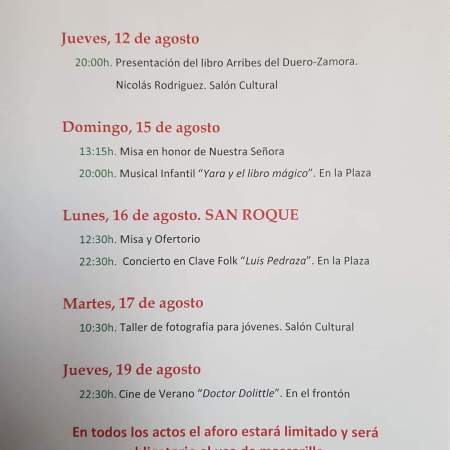 Programa completo de las Fiestas de Almeida de #Sayago 2023